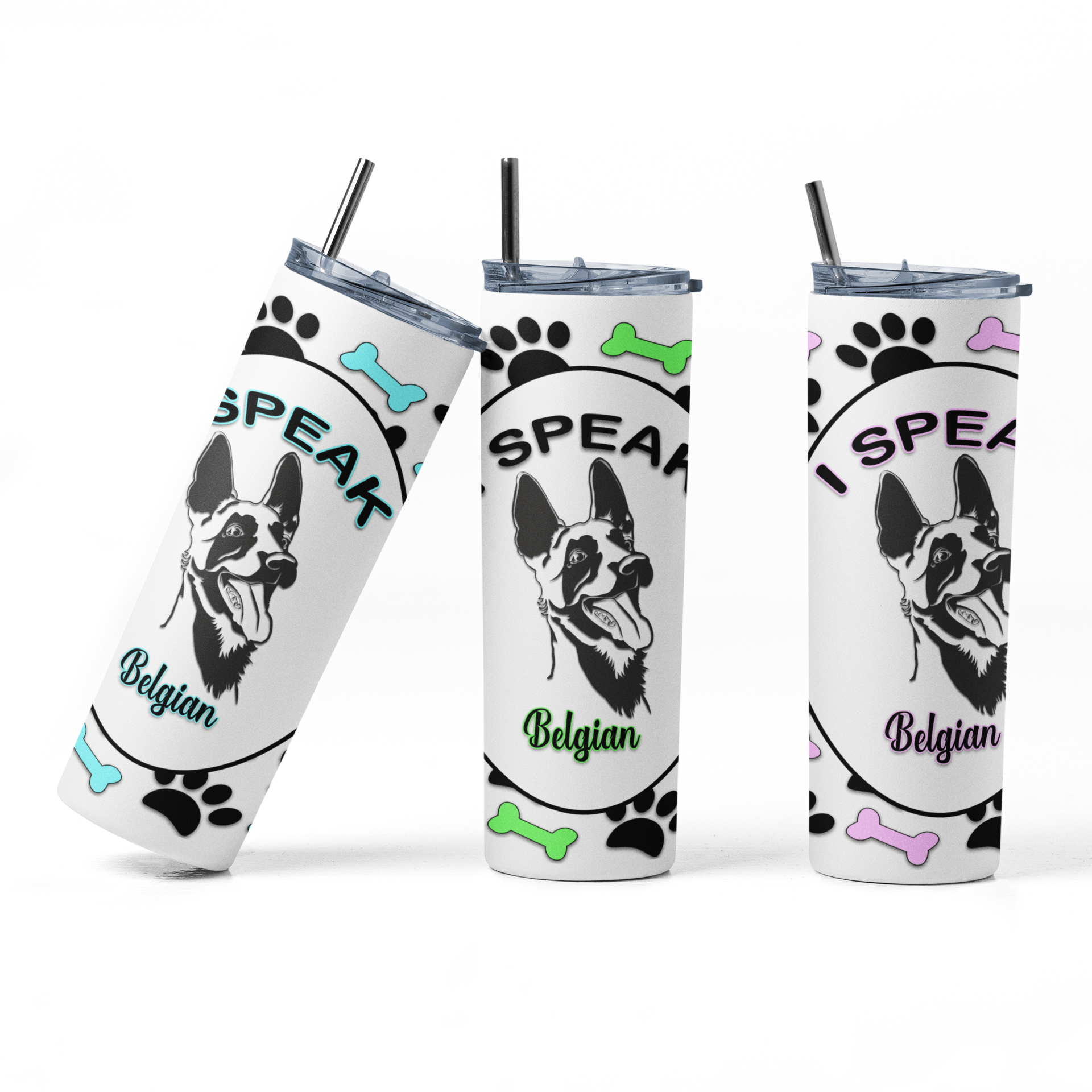 Are you a dog lover? Let every one know which language you speak. This personalized tumbler will make a perfect gift! Our premium 20oz skinny tumbler with straw has a gloss finish with graphics that will never fade, peel or crack. A gift that will last a lifetime!